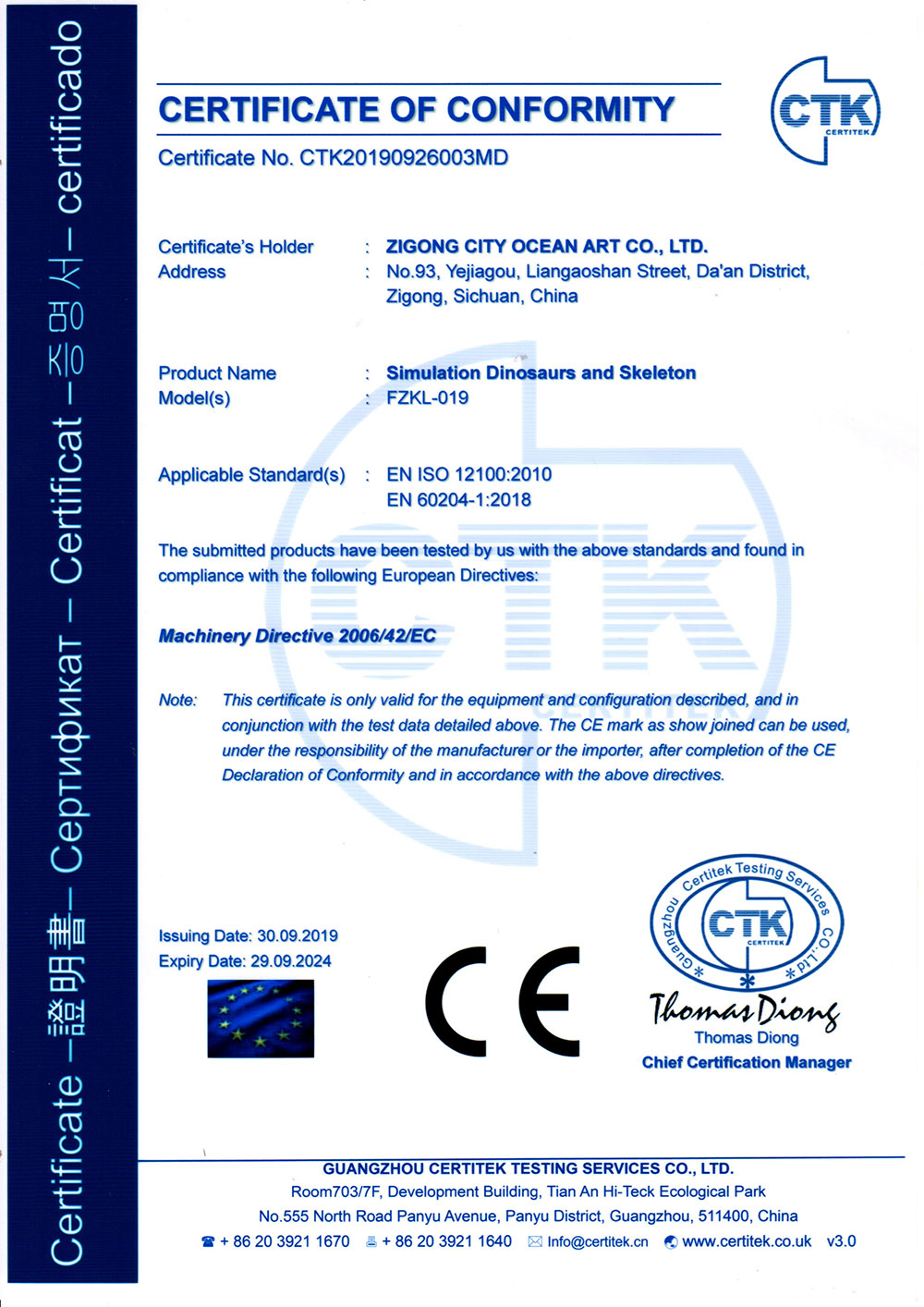 自A(ch)?jng)大z艺术有限责d司简介自贡市(jng)大洋艺术有限责Q公司Qؓ(f)中国恐龙展品制作基地Q成立于2009q_(d)是专业从事恐龙化石骨架标本模型、仿真活体机器恐龙、仿真雕塑恐龙、玻璃钢恐龙、恐龙游乐场互动讑֤{展品的研制开发、出售和展览的高U技企业。ƈ在中国古生物专家的指gq行开发制作恐龙和仿真动物展品Q所制作的恐龙展品,被中国科学院鉴定为“优UU研作品”,被誉为“侏|纪”的再现者。公司占地面U?0000qx(chng)cI有一支专业研制恐龙标本模型和机器恐龙展品的职工队伍和一套具有先q性能的生产设备,q生产能力ؓ(f)500万美元,其中U?0%的出口。我们研制和生的恐龙展品,以其造型逼真、表皮质感强、动作协调自如、组合情节科学、h(hun)格合理、售后服务佳而倍受国内外客L(fng)青睐和好评。十多年来,我们先后为美国、加拿大、阿根h(hun)、秘鲁、匈牙利、奥地利、荷兰、澳大利亚和我国的香港、台湑֜Z?qing)北京自然博物馆、天z自然博物馆、上然博物馆、重?jin)自然博物馆、浙江自然博物馆、成都理工大学博物馆、太原中国煤炭博物馆、内蒙二q浩Ҏ(gu)龙博物馆、武汉中国地质大学博物馆、西峡恐龙蛋博物馆、朝阳鸟化石博物馆、河源恐龙博物馆、常州中华恐龙园、云南禄C界恐龙谷{地区的博物馆和恐龙主题公园以及(qing)人民公园制作和提供了(jin)相当数量的恐龙展品。同Ӟ先后为重?jin)恐龙公园、v南恐龙公园、晋江新世纪恐龙公园、番古生物博物馆、东莞古生物博物馆、西峡恐龙蛋博物馆设计和陈列布展?/div>